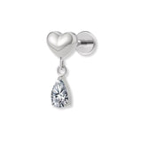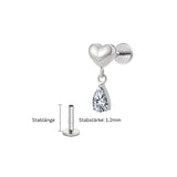 1.2 mm Titan Piercing (16G) Herz mit Zirkonia Tropfen, silberfarben